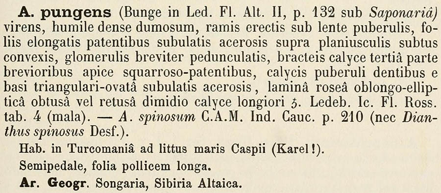 Протолог Saponaria pungens Bunge (Icones plantarum novarum vel imperfecte cognitarum floram Rossicam, imprimis Altaicam, illustrantes 1: t. 4. 1829):