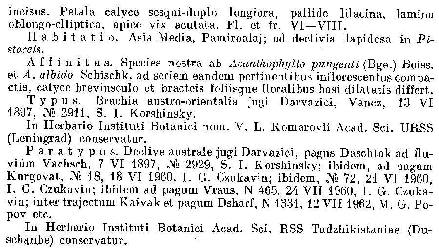 | Андрей Ковальчук | Протолог Acanthophyllum ruptile Vved. (Ботанические материалы гербария Ботанического института Узбекистанского филиала Академии наук СССР 3: 8(-9). 1941):