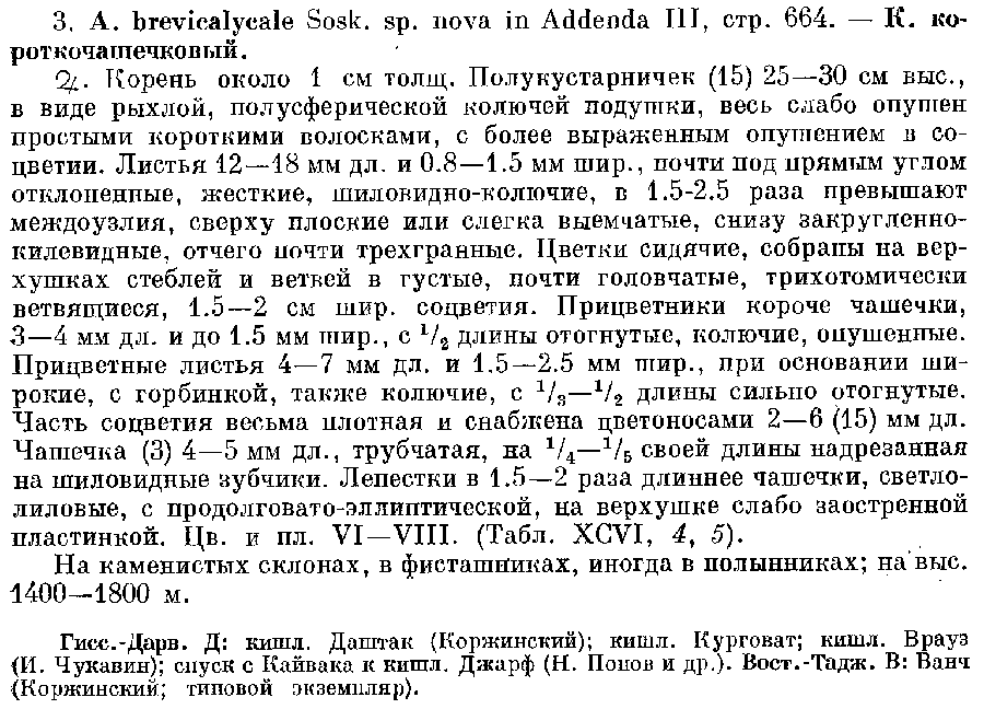 | Андрей Ковальчук | Протолог Acanthophyllum brevicalycale Soskov (Флора Таджикской ССР 3: 664(-665), 619. 1968):