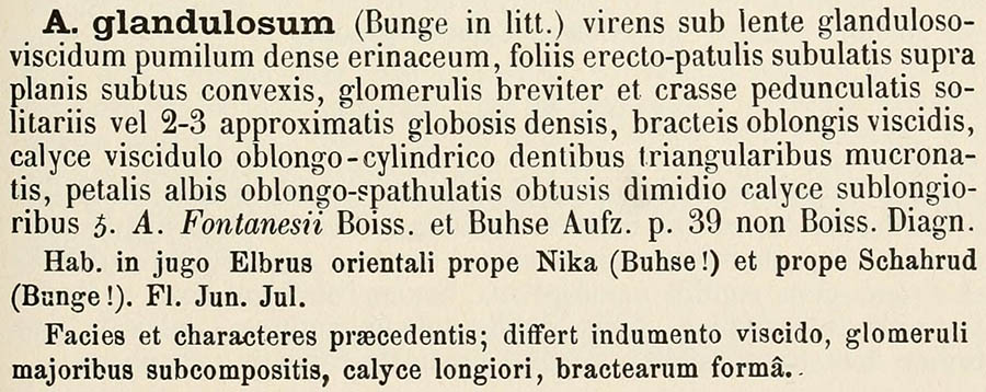 Протолог Acanthophyllum glandulosum Bunge ex Boiss. (Flora Orientalis 1: 565. 1867 [Apr-Jun 1867]):