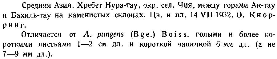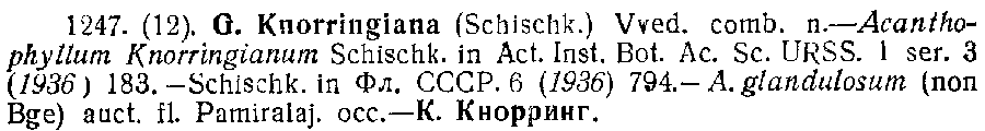 Протолог Acanthophyllum knorringianum Schischk. (Труды Ботанического института АН СССР. Сер. 1. Флора и систематика высших растений 3: 183(-184). 1936)::