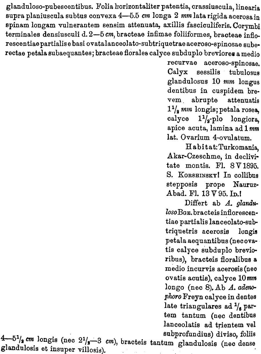 | Андрей Ковальчук | Протолог Acanthophyllum korshinskyi Schischk. (Труды Ботанического музея Академии наук СССР 24: 39(-40). 1932):