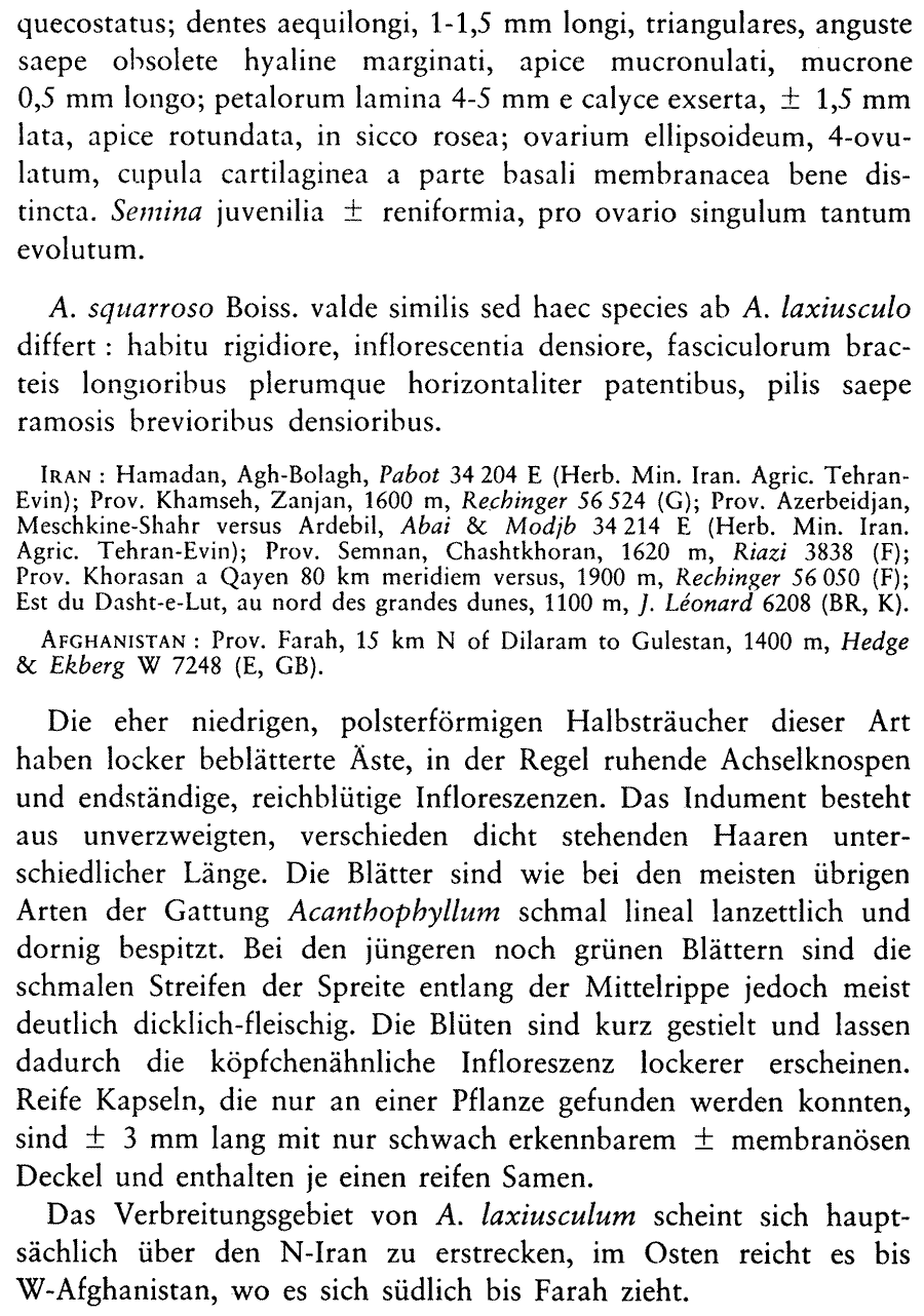 Протолог Acanthophyllum laxiusculum Schiman-Czeika (Bulletin du Jardin Botanique National de Belgique 55(1-2): 120(-121). 1985):