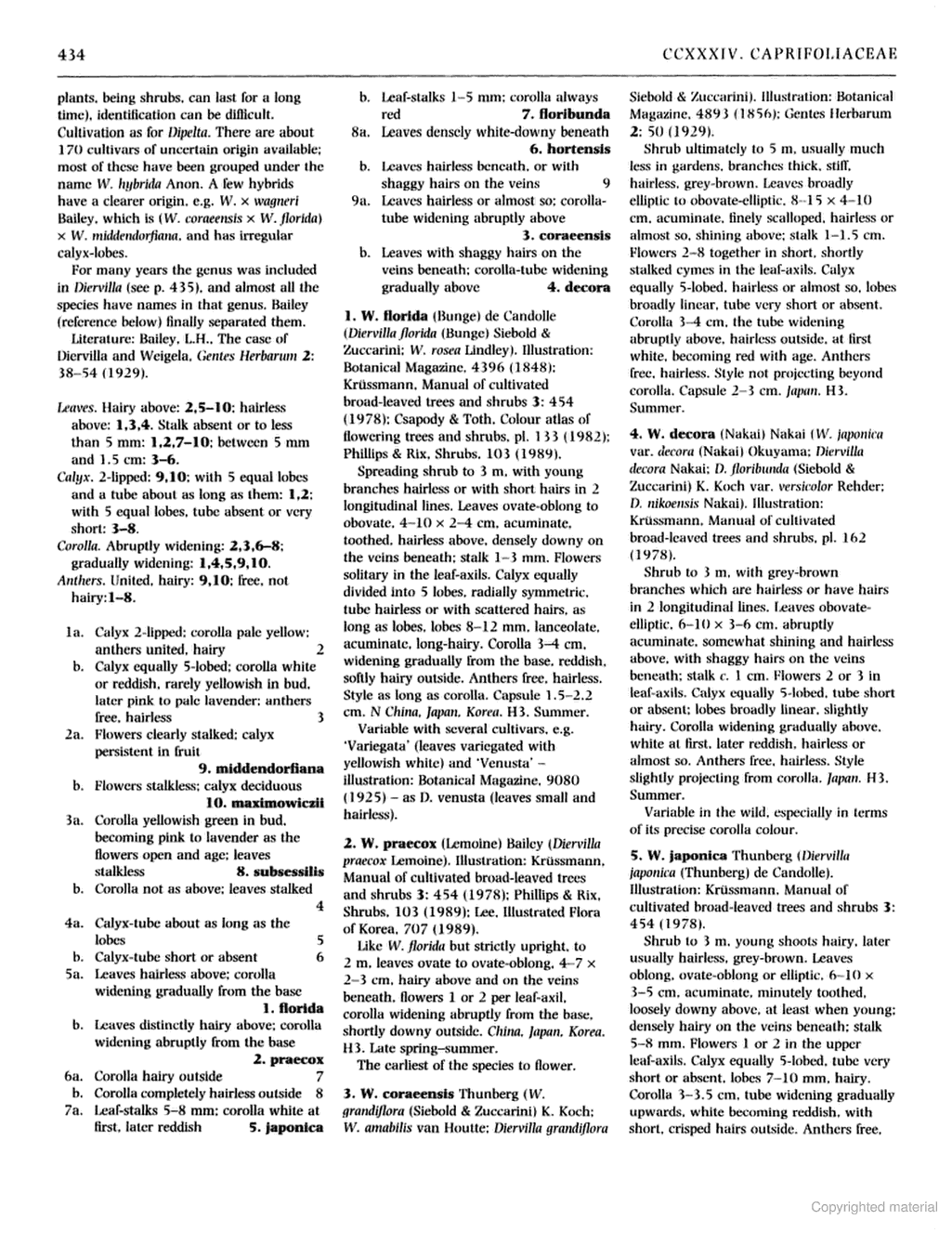 | Татьяна Сова | Андрей, благодарю! Нормальный - я имела ввиду современный, с более или менее полными описаниями как можно большего числа видов, которым пользуются специалисты, и желательно в сети, так как доступа к литературе, кроме Интернета, у меня нет.  Раньше с вейгелами не сталкивалась, естественно, кое-что нашла в Интернете, но получилась большая путаница, хотелось бы услышать квалифицированное мнение.  Еще раз спасибо! |