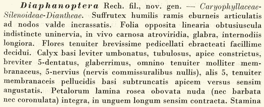 | Андрей Ковальчук | Протолог рода Diaphanoptera Rech. f. (тип: Diaphanoptera khorasanica Rech.f.) (Repertorium Specierum Novarum Regni Vegetabilis 48: 41. 1940):