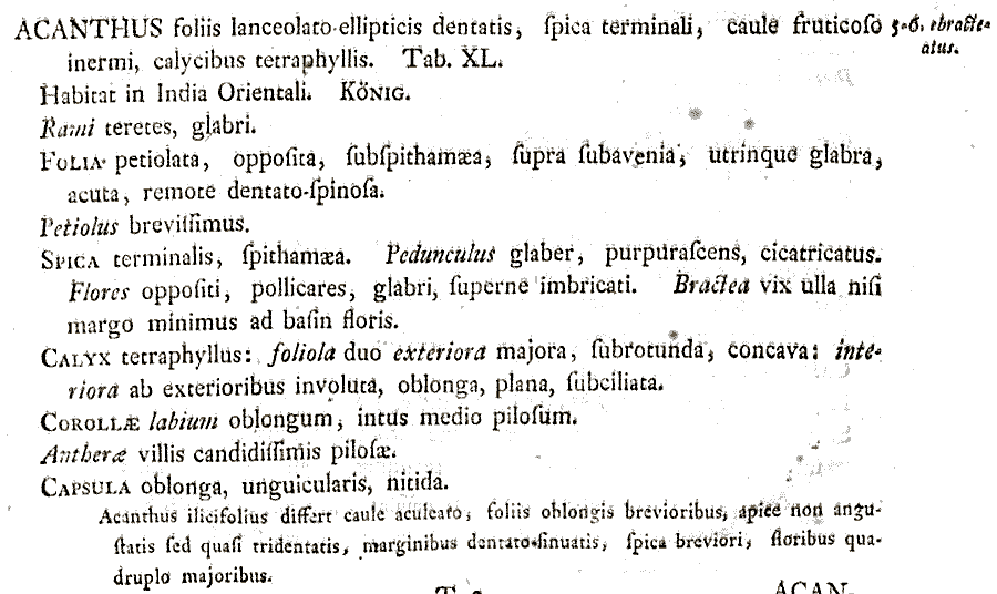 Протолог Acanthus ebracteatus Vahl (Symbolae Botanicae 2: 75. t. 40. 1791):