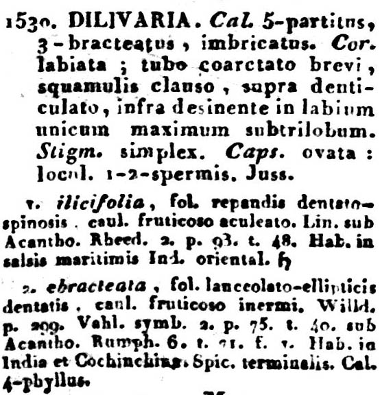 | Андрей Ковальчук | Обнародование комбинации Dilivaria ebracteata (Vahl) Pers. (Synopsis Plantarum: seu Enchiridium botanicum, complectens enumerationem systematicam specierum hucusque cognitarum 2(1): 179. 1806 [Nov 1806]):