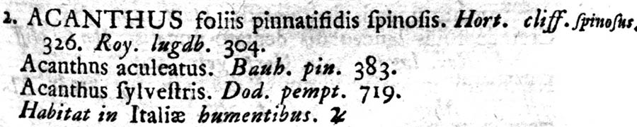 Протолог Acanthus spinosus L. (Species Plantarum 2: 639. 1753 [1 May 1753]):