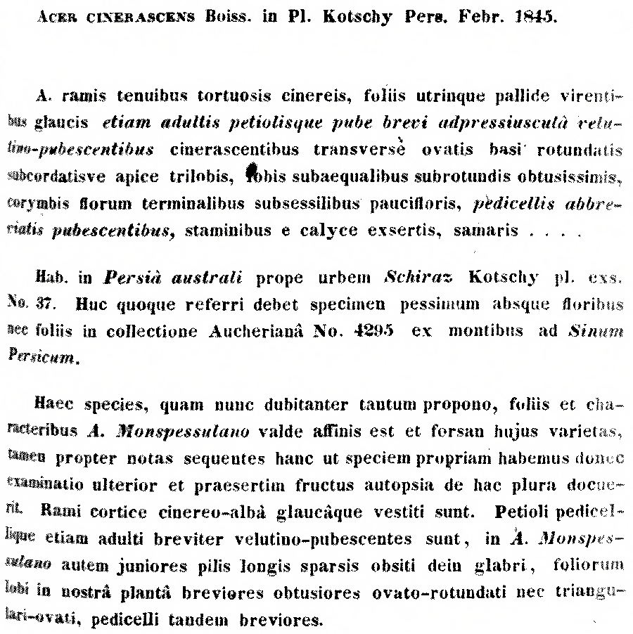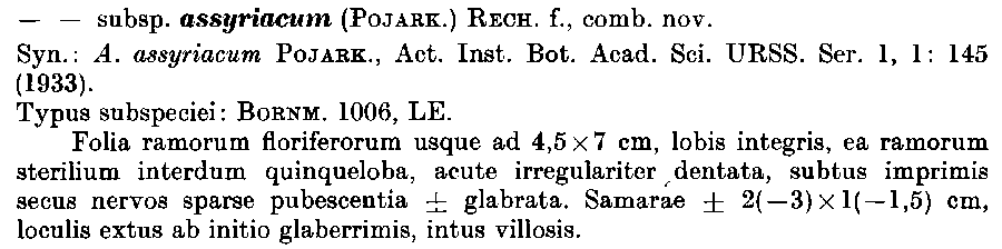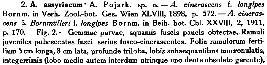 Протолог Acer assyriacum Pojark. (Труды Ботанического института АН СССР. Сер. 1. Флора и систематика высших растений 1: 145(-146). 1933):