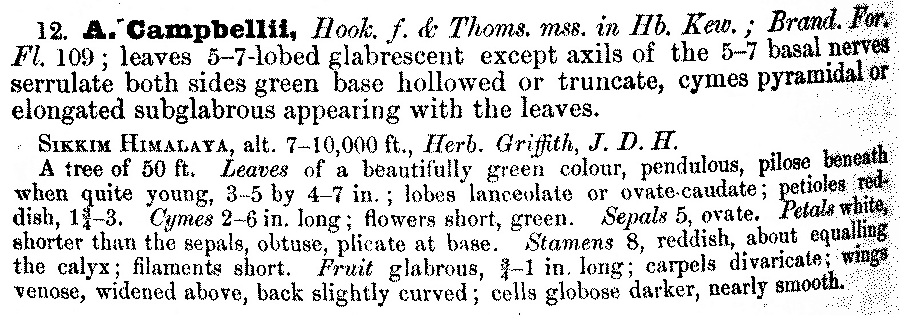 Протолог Acer campbellii Hook. f. & Thomson (Flora of British India 1(3): 696. 1875 [Feb 1875]):