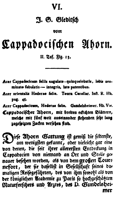 Статья с первоописанием Acer cappadocicum Gled. (Schriften der Berlinischen Gesellschaft naturforschender Freunde 6: 116(-121), t. 2 (1785  :