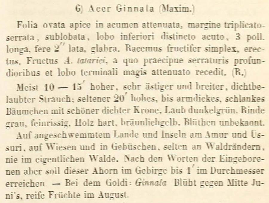Протолог Acer ginnala Maxim. (Bulletin de la Class Physico-Mathematique de l'Academie Imperiale des Sciences de Saint-Pétersbourg 15: 126. 1856):