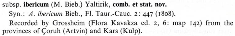 | Андрей Ковальчук | Название Acer ibericum было обнародовано Вильденовым на два года раньше, чем это сделал сам Биберштейн, так что авторство этого таксона следует записать как M. Bieb. ex Willd. |