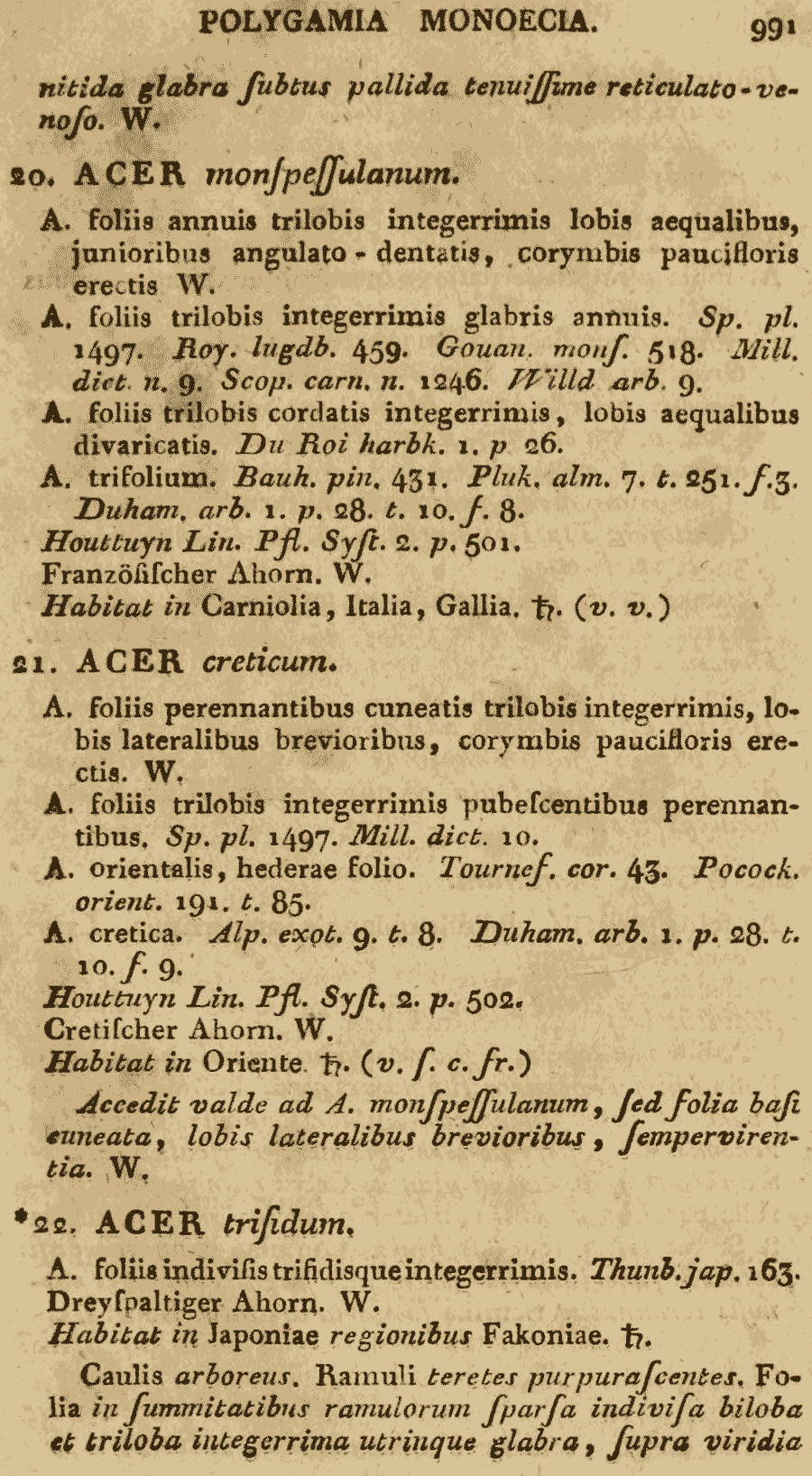 Протолог Acer ibericum M. Bieb. ex Willd. (Species Plantarum. Editio Quarta 4(2): 990. 1806 [Apr 1806]):