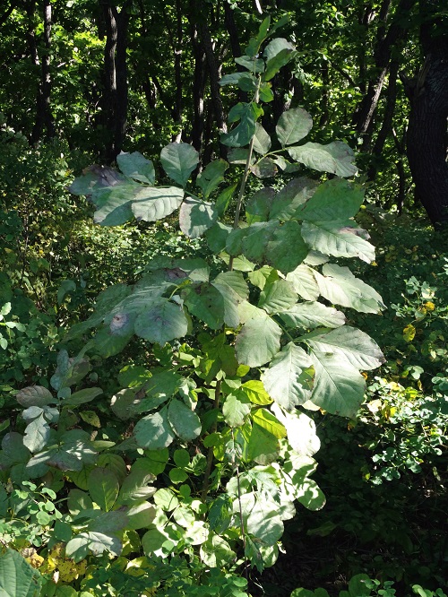 Fraxinus rhynchophylla, листья, очевидно, в мучнистой росе.