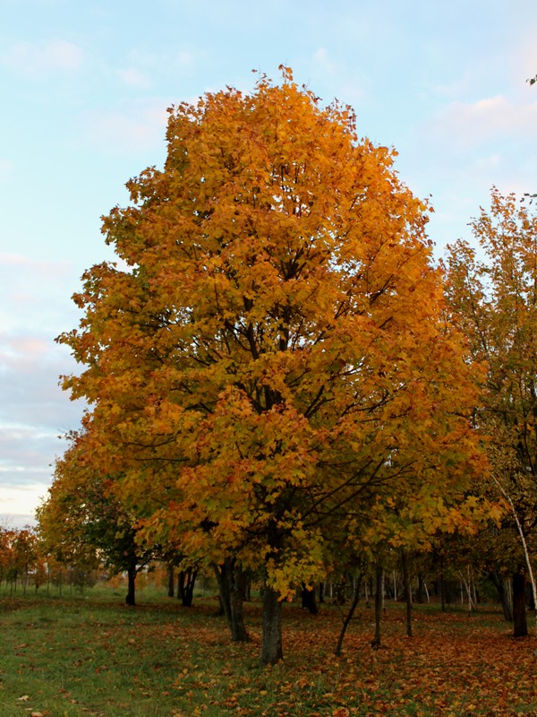 А осенью некоторые интродуценты не вполне понимают, какой сейчас сезон. Этот клён ведь из Северной Америки. Возможно, растёт южнее. Не сориентировался. |