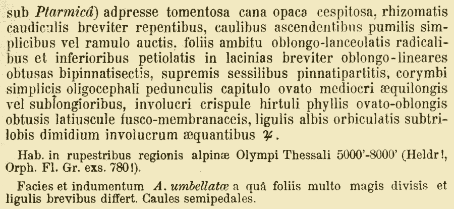 | Андрей Ковальчук | Протолог Achillea moschata ssp. olympica Heimerl (Denkschriften der Kaiserlichen Akademie der Wissenschaften, Wien. Mathematisch-Naturwissenschaftliche Klasse 48: 145. 1884 [Aug 1884]):