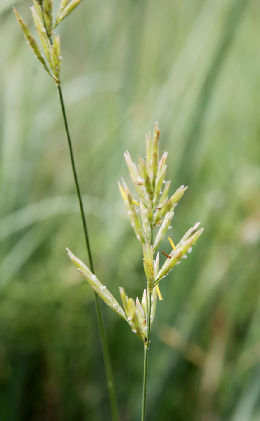 Все особи костреца по соцветию однотипно компактные (длина веточек - первые миллиметры, далеко до сантиметра ни одна не дотягивает). Ось метёлки с редкими тонкими шипиками, оси колосков с многочисленными шипиками, никаких намёков на ости - чешуи либо тупые, иногда даже немного закруглённые. Волоски на стебле только под узлами (+немного на узлах), вниз направленные.