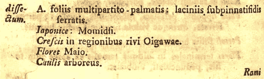 Протолог Acer dissectum Thunb. in Murray (Systema Vegetabilium: secundum classes ordines genera species cum characteribus et differentiis. Editio decima quarta: 911. 1784 [May-Jun 1784]):