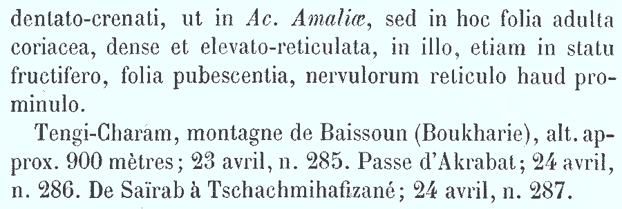 Протолог Acer regelii Pax и сопровождающий первоописание рисунок (Das Pflanzenreich (Engler) Aceraceae: 60(-61). 1902 [7 Jan 1902]):