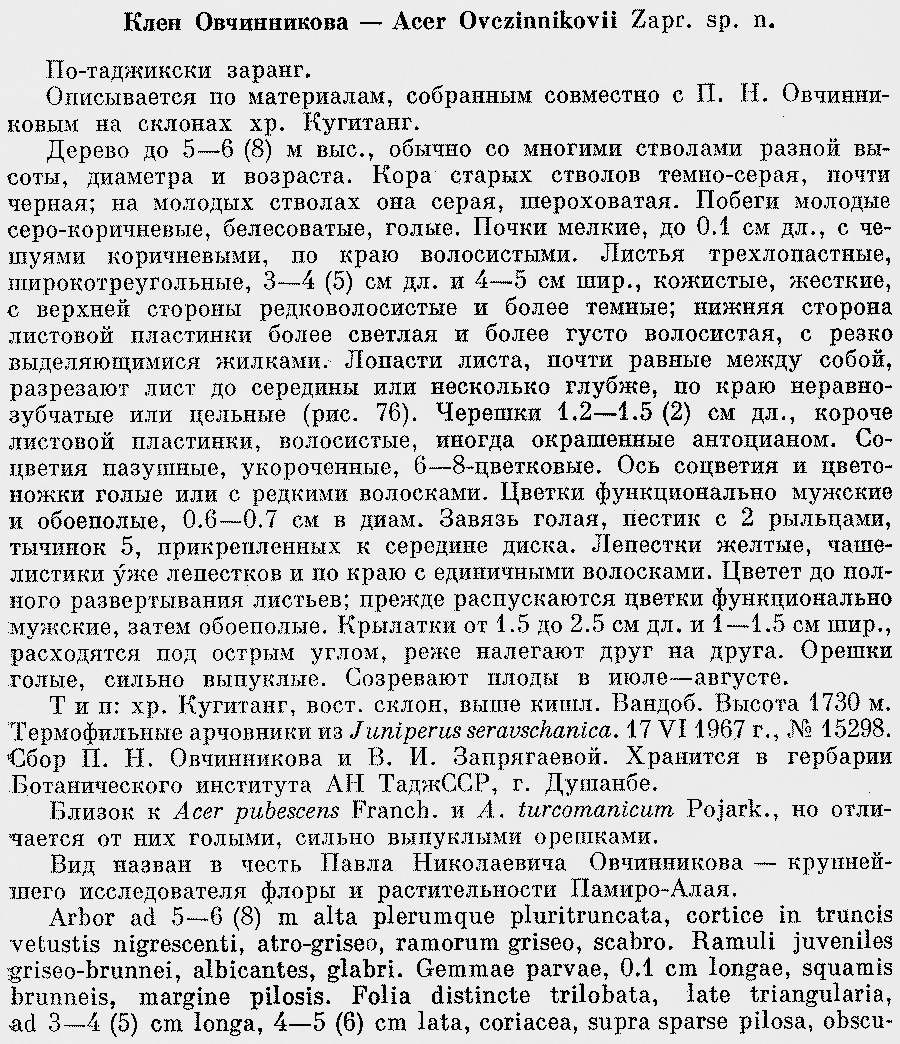 | Андрей Ковальчук | Протолог Acer ovczinnikovii Zaprjagaeva и сопровождающая его иллюстрация (Лесные ресурсы Памиро-Алая: 388(-390). 1976):