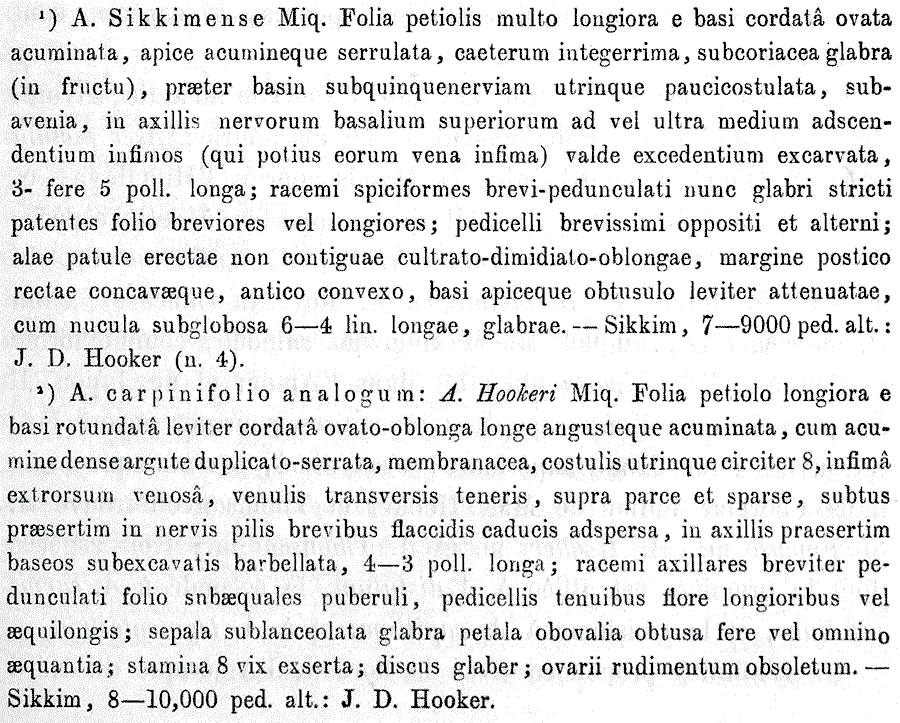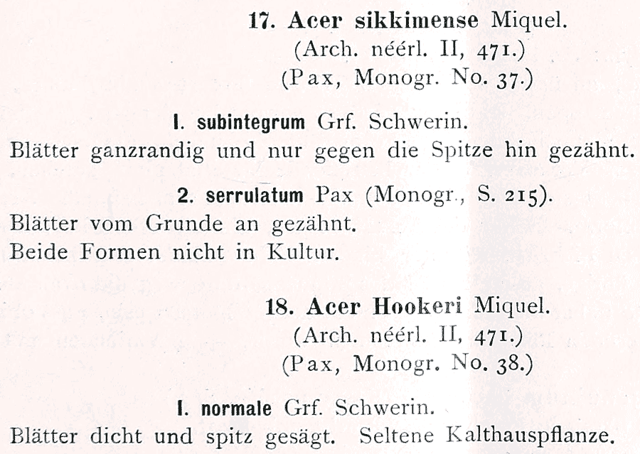 | Андрей Ковальчук | Протологи Acer sikkimense var. subintegrum Schwer. и Acer hookeri var. normale Schwer. (Gartenflora 42: 229. 1893):
