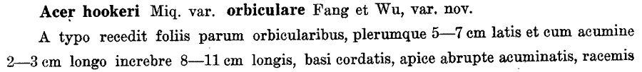 | Андрей Ковальчук | Протолог Acer hookeri var. orbiculare W.P. Fang & Y.T. Wu (Acta Phytotaxonomica Sinica 17(1): 83(-84). 1979):