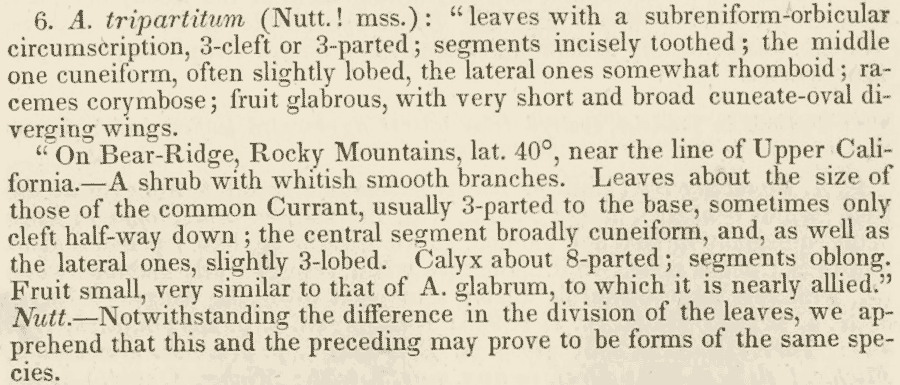 Протолог Acer tripartitum Nutt. (Flora of North America, A (Torrey & Gray) 1(2): 248. 1838 [Oct 1838]):