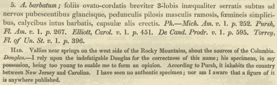 Протолог Acer barbatum Hook. (Flora Boreali-Americana 1: 113. 1840):