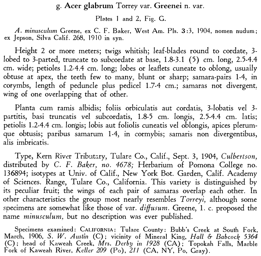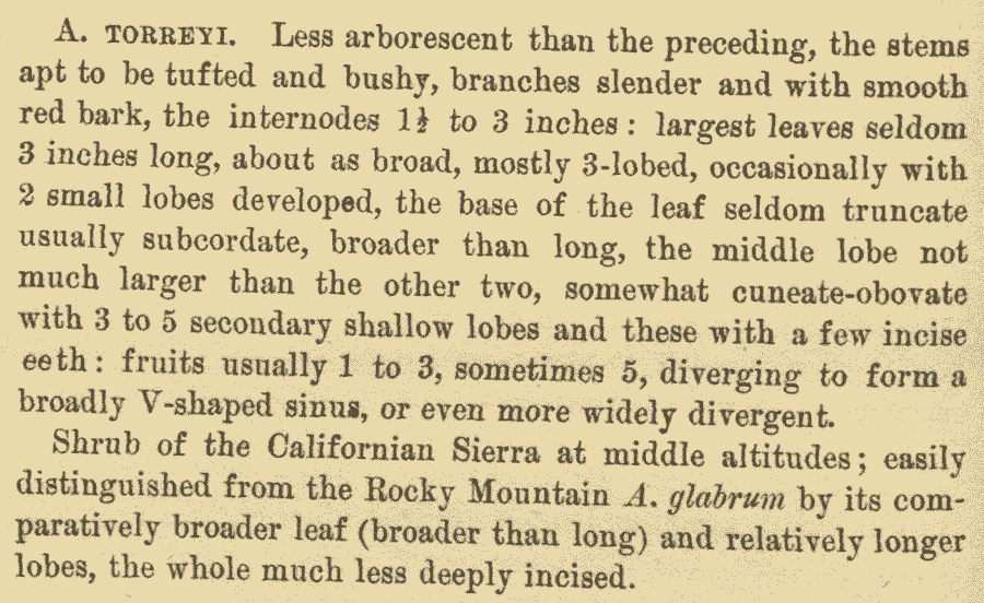 Протолог Acer torreyi Greene (Pittonia 5(26): 2. 1902 [9 Sep 1902]):