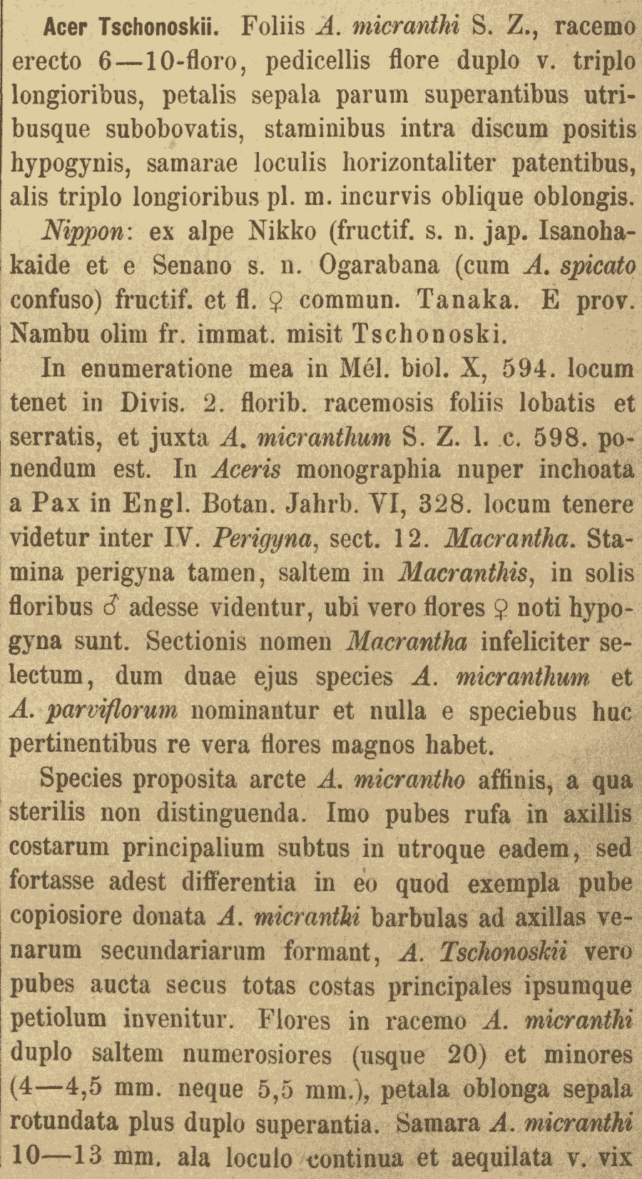 Протолог Acer tschonoskii Maxim. (Bulletin de l'Académie impériale des sciences de St.-Pétersbourg ser. 3, 31: 24(-25). 1887):