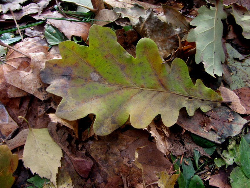 Имеются листья разных дубов, интересно, какие это виды. 1. Самый обыкновенный лист, с округлыми краями.