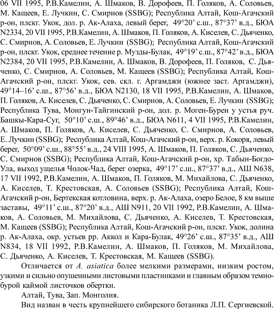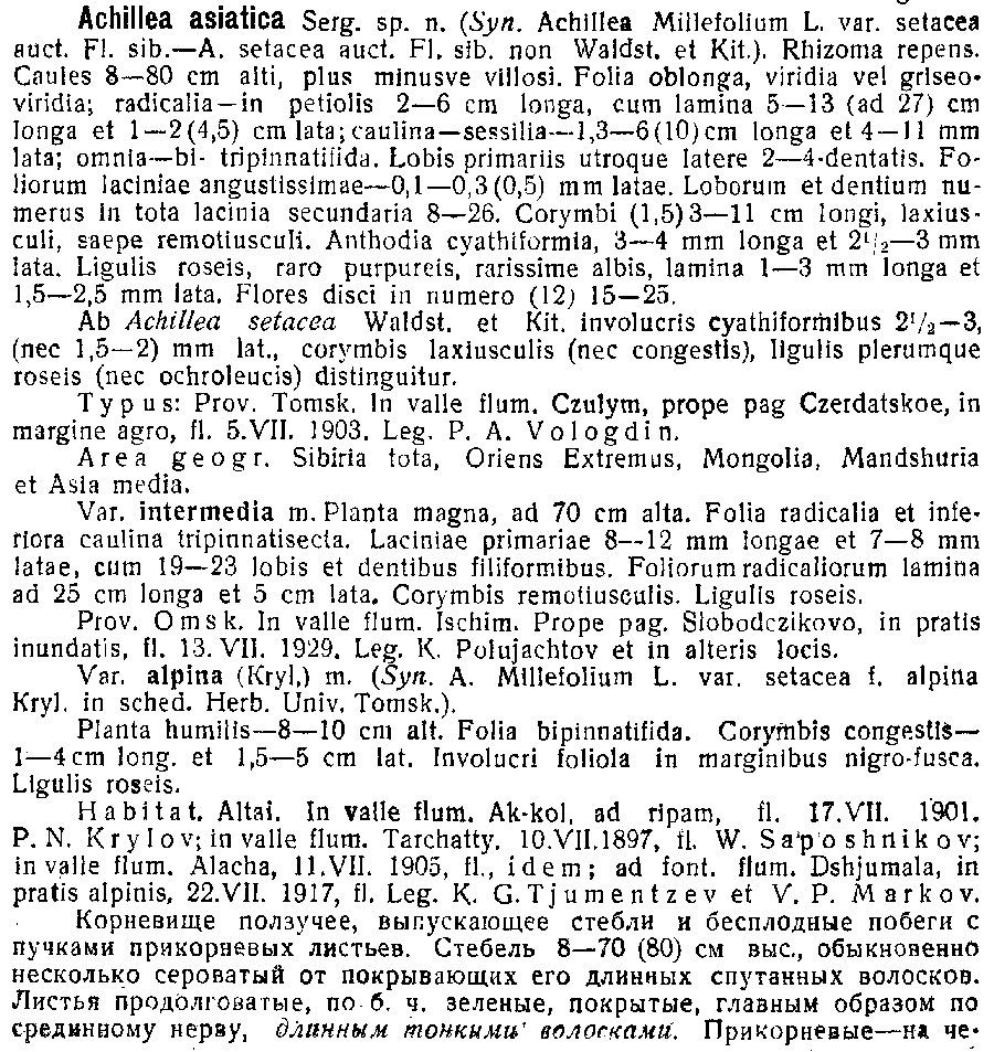 Achillea sergievskiana Справка |