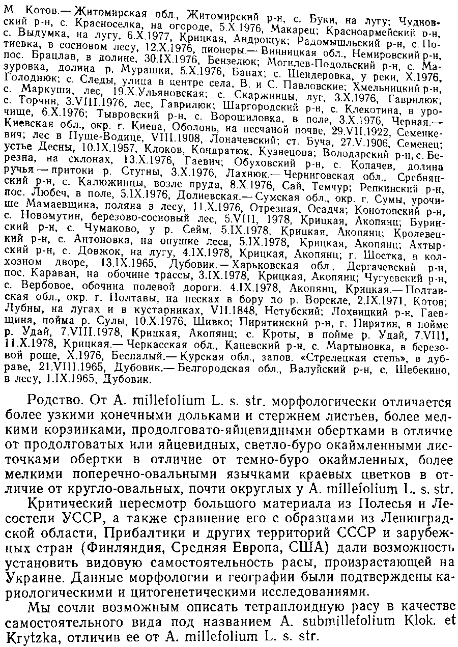 | Андрей Ковальчук | Протолог Achillea submillefolium Klokov & Krytzka (Тысячелистники 220(-223). 1984):