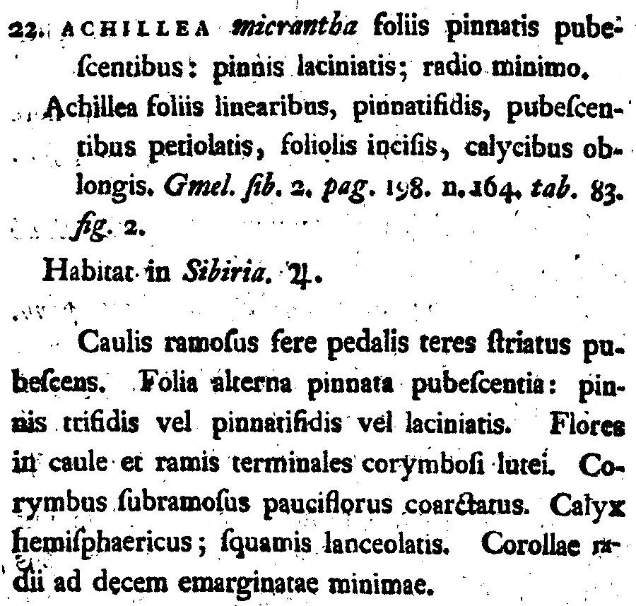 (Tractatus botanico-medicus de Achilleis cui accedit supplementum generis Tanaceti: 33. 1789):