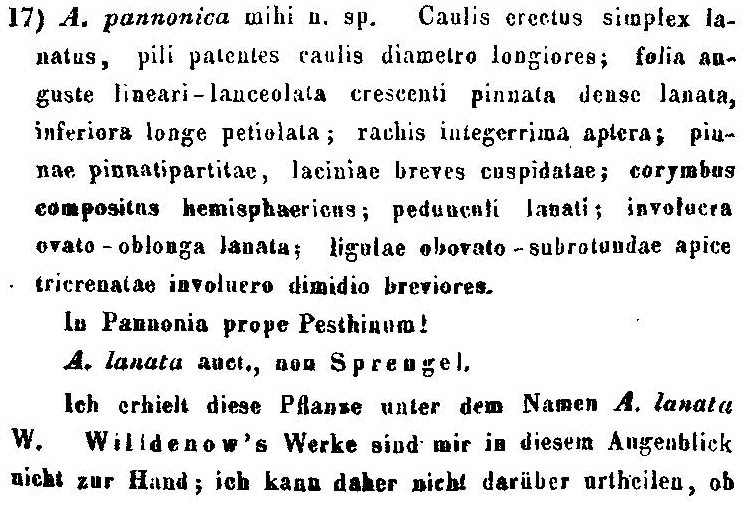 Протолог Achillea pannonica Scheele, nom. cons. (Linnaea 18: 471. 1845):