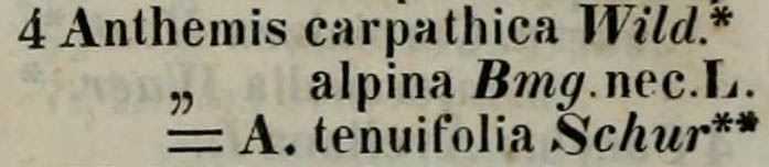| Андрей Ковальчук | Обнародование комбинации Anthemis tenuifolia Schur (Verhandlungen und mitteilungen des Siebenbürgischen vereins für naturwissen schaften zu Hermannstadt 2: 171. 1851):
