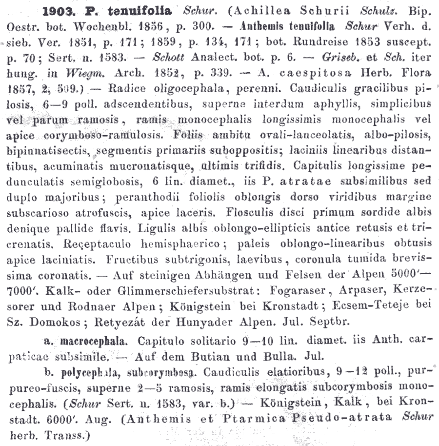 | Андрей Ковальчук | Обнародование комбинации Ptarmica tenuifolia (Schur) Schur (Enumeratio Plantarum Transsilvaniae 327. 1866 [Apr-Jun 1866]):