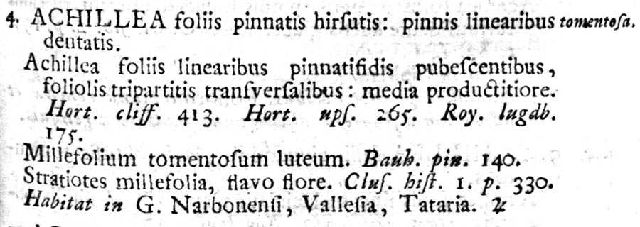 Протолог Achillea tomentosa L. (Species Plantarum 2: 897. 1753):