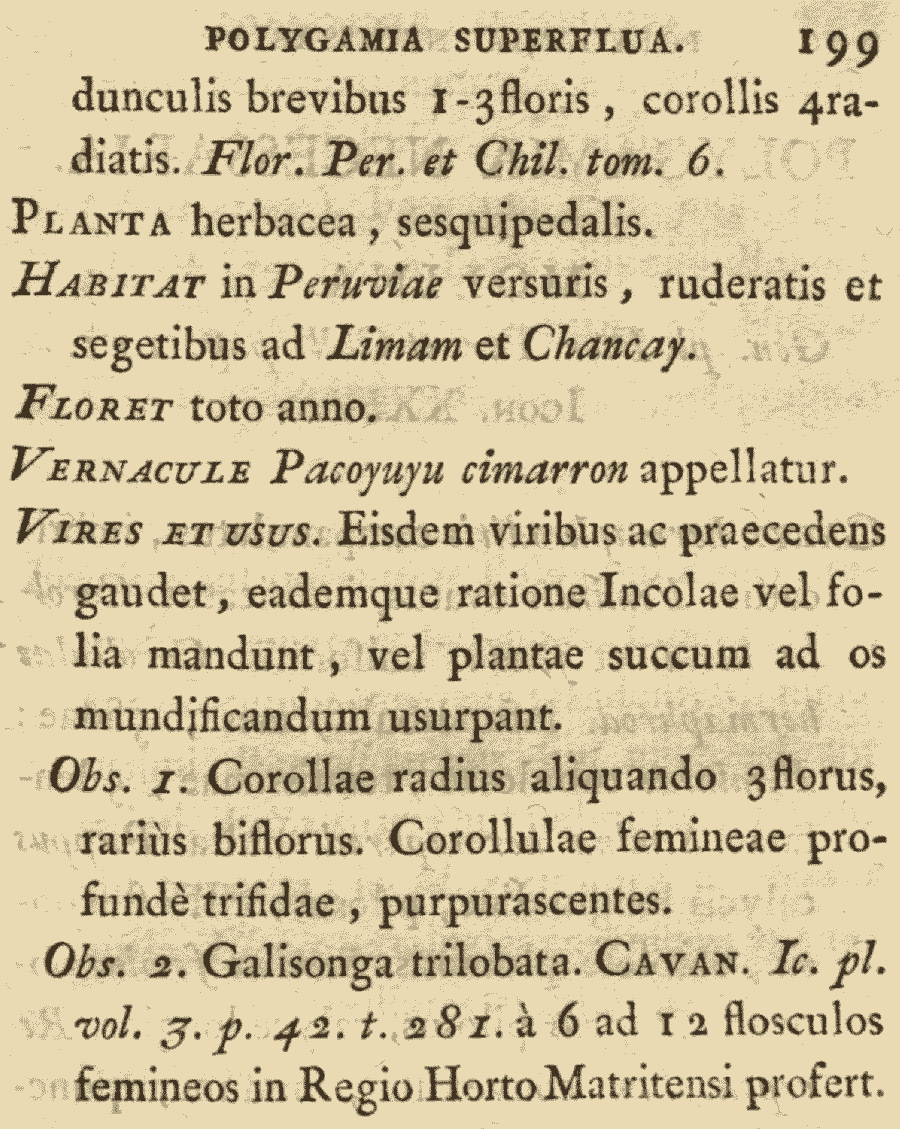 Протолог Galinsoga quadriradiata Ruiz & Pav. (Systema Vegetabilium Florae Peruvianae et Chilensis 1: 198–199. 1798 [late Dec 1798]):