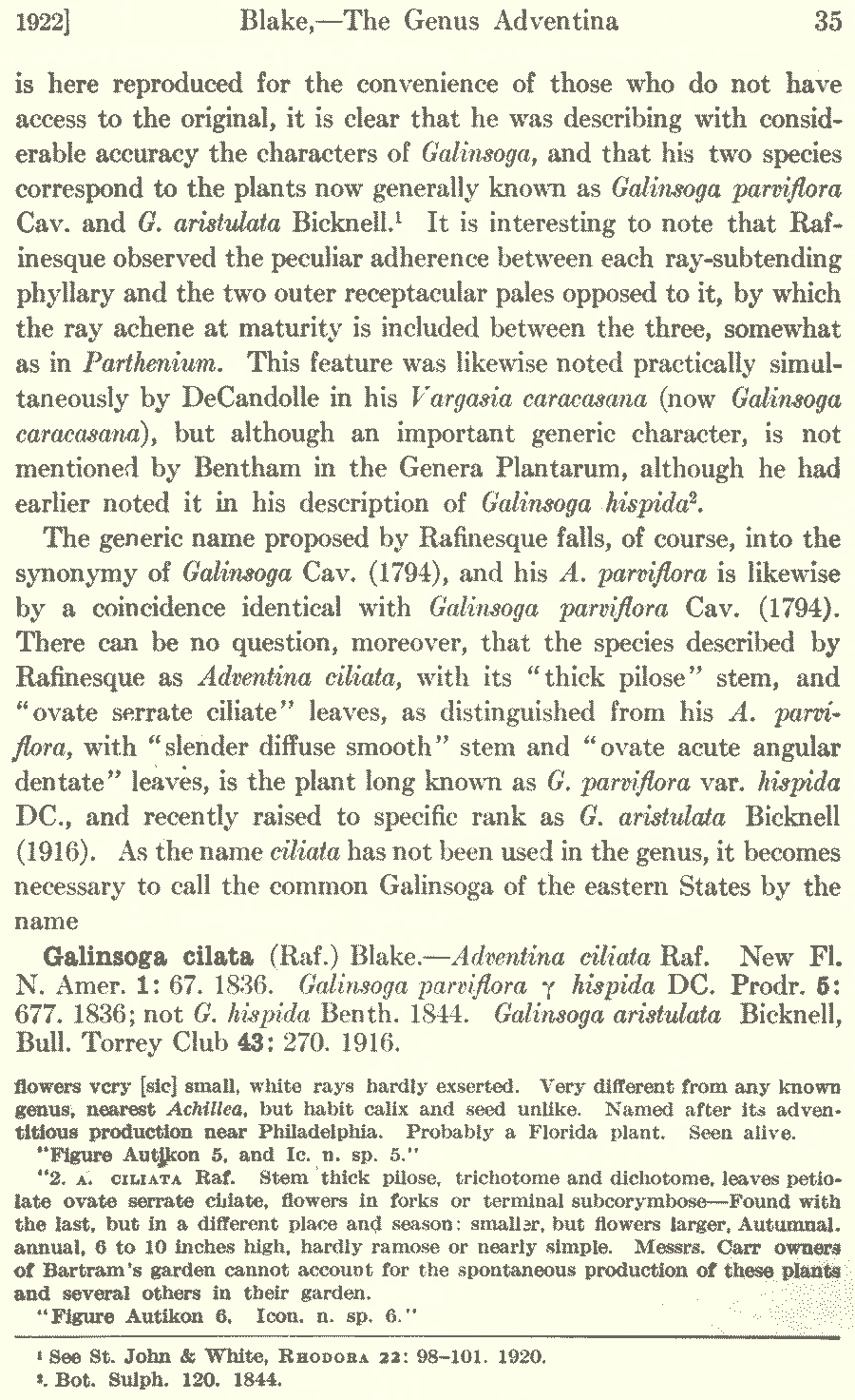 | Андрей Ковальчук | Обнародование комбинации Galinsoga ciliata (Raf.) Blake (Rhodora 24(278): 35. 1922):