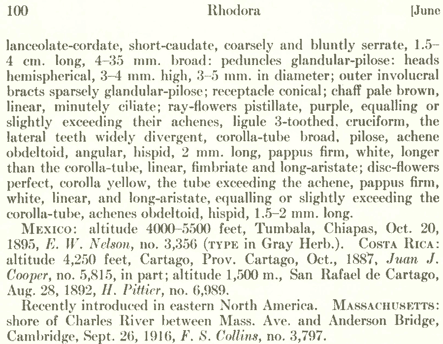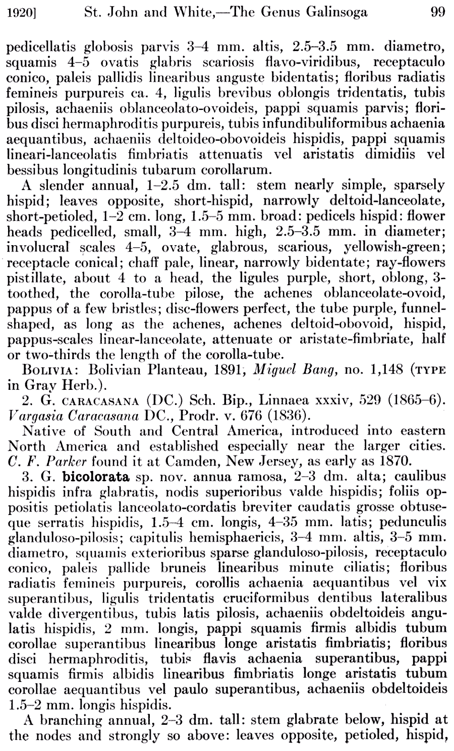 Протолог Galinsoga bicolorata H. St. John & D. White (Rhodora 22(258): 99–100. 1920):