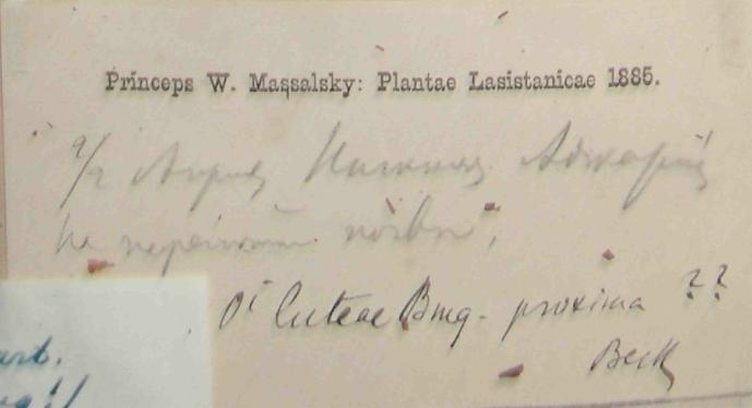 2. Turtschi-dagh, inter Kasi-Kumuch et Gunib, Caucasus, 21.VII.1885, чей автограф - стоит печать гербария Траутфеттера, может он и собрал?.