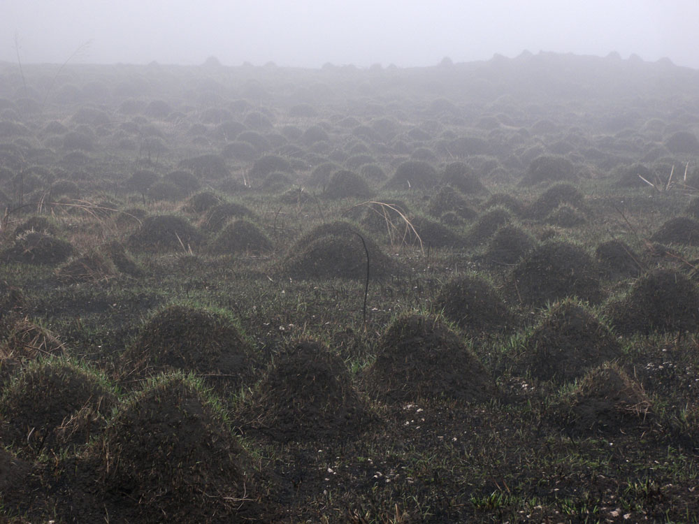 | Дмитрий Орешкин | В Псковской области похожие кочки на брошенных полях образуют земляные муравьи. Активность муравьёв зависит от погоды. А ещё ту, которая под землёй, не видно. |