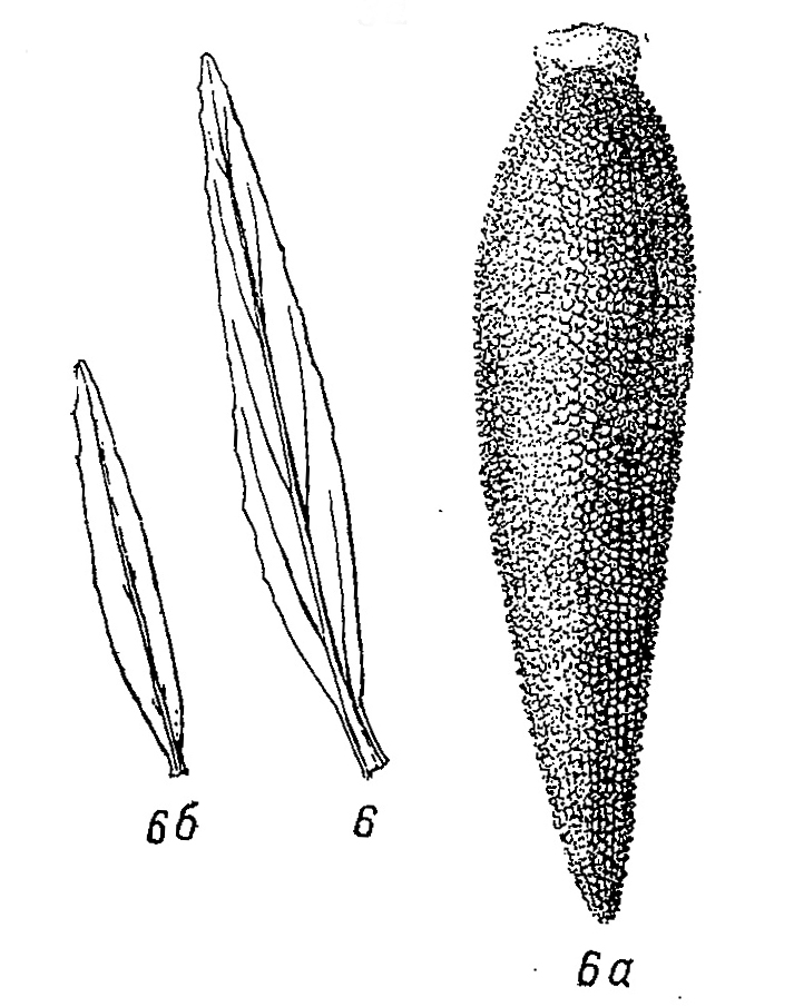 Рисунок Н.З. Семёновой-Тян-Шанской из 4 тома "Флоры Мурманской области"(стр. 215). Средний стеблевой лист, семя (а) и средний стеблевой лист var.