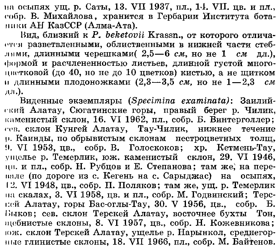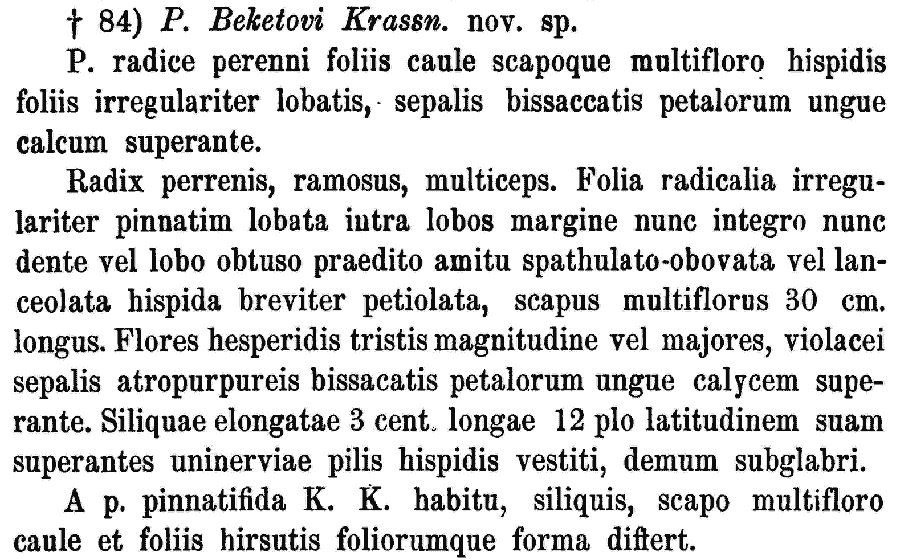 | Андрей Ковальчук | Протолог Parrya beketovii Krasn. (Enumeratio plantarum anno 1886 in Tian Schan orientali lectarum: 18. 1887):