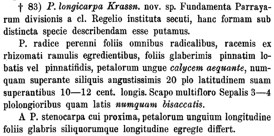 | Андрей Ковальчук | Протолог Parrya longicarpa Krasn. (Enumeratio plantarum anno 1886 in Tian Schan orientali lectarum: 18. 1887):