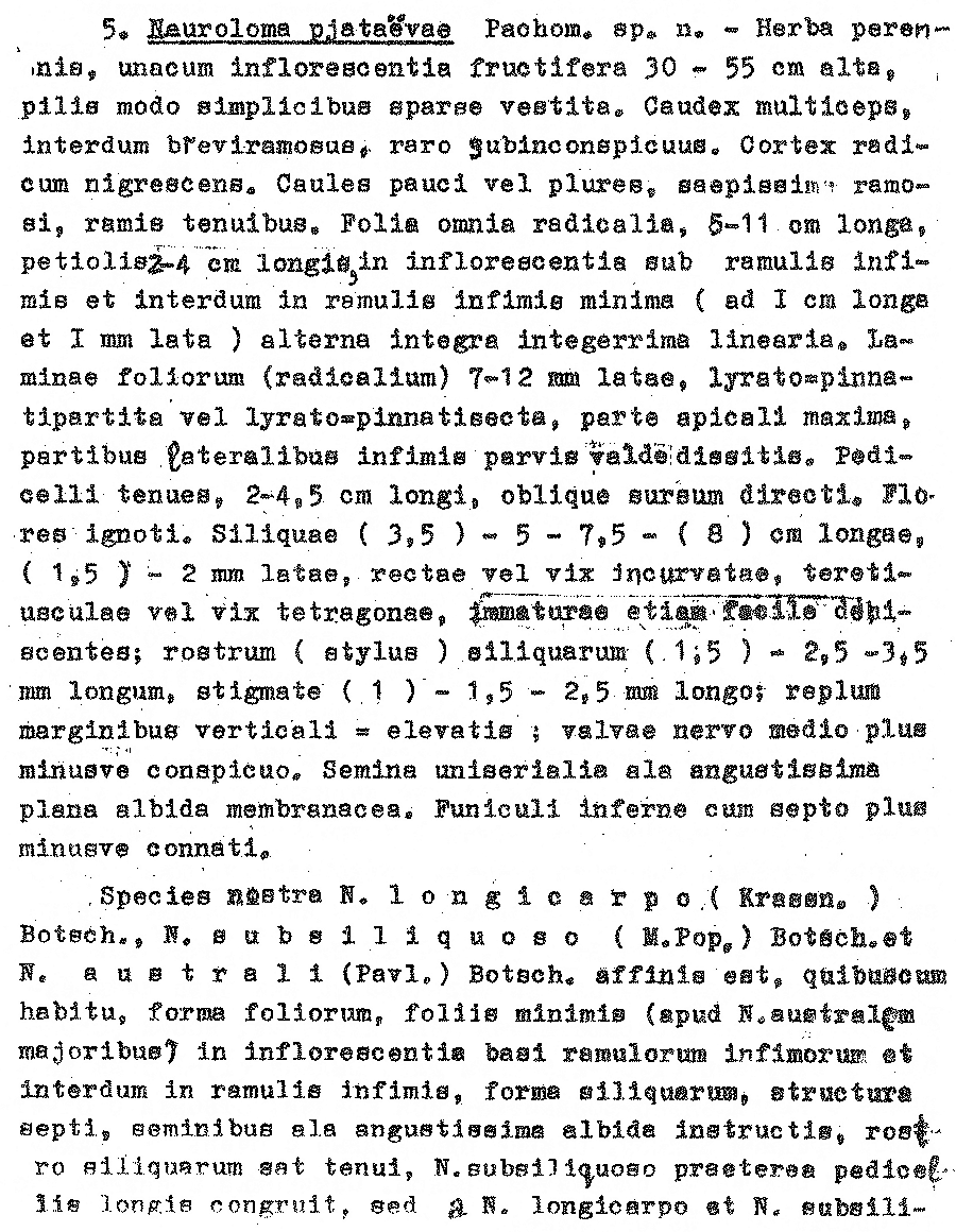 | Андрей Ковальчук | Протолог Neuroloma pjataevae Pachom. (Ботанические материалы гербария Института ботаники Академии наук Узбекской ССР 19: 47(-49). 1974):