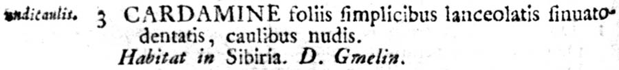 Протолог Cardamine nudicaulis L. (Species Plantarum 2: 654. 1753 [1 May 1753]):