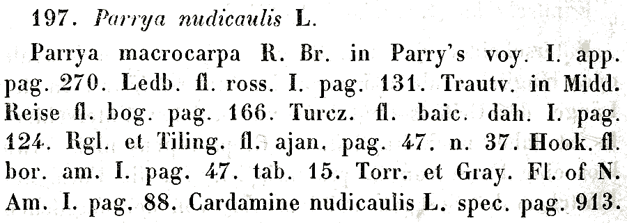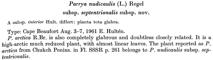 Протолог Parrya nudicaulis ssp. septentrionalis Hulten (Arkiv för Botanik ser. 2, 7(1): 67. 1968):